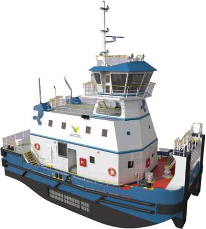 O projeto teve início em 2018, com o projeto da Robert Allan, e está sendo construído no estaleiro Belov, além de contar com WEG e com a DNV como fornecedores.